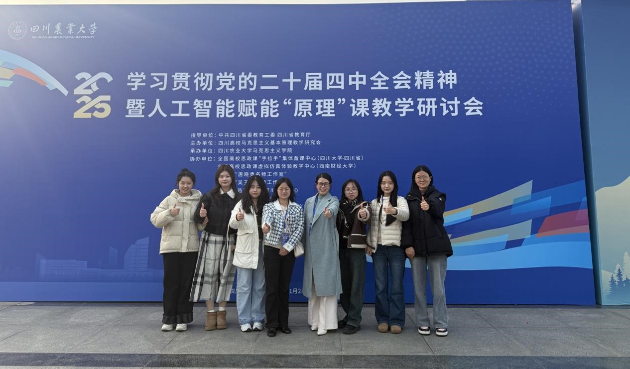 承办的“学习贯彻党的二十届四中全会精神暨人工智能赋能‘原理’课教学研讨会”在四川农业大学成功举办。来自全省50余所高校300余名“原理”课教师出席了本次会议,学院马克思主义基本原理教研室罗敏副教授、杨德霞副教授以及部分硕士研究生参加了此次会议。
