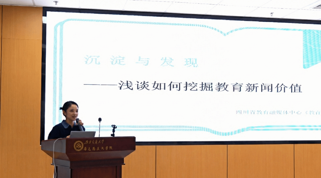 沙龙特别邀请四川省教育融媒体中心新闻编审事业部副部长、《教育导报》副总编辑倪秀进行分享。倪秀以《沉淀与发现——浅谈如何挖掘教育新闻价值》为题,结合多年宣传工作经验,以新闻选题入手,深入探讨了教育改革宣传的策略。她分享了“西南交大‘孪生数字人辅导员’”“求职路上的‘三次助攻’——AV推荐