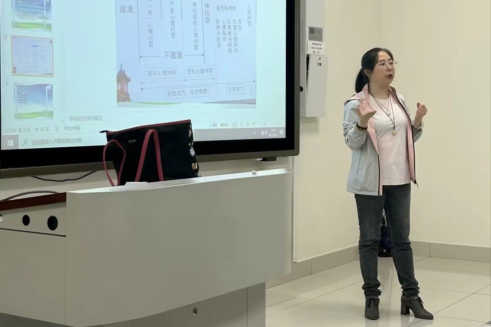 首先,曾老师简要说明了心理健康辅导的意义,使同学们对心理健康有了初步了解,进而引出对心理问题的具体论述。其次,曾老师列举了在学习和生活中心理健康出现问题的一些表现,具体介绍了认识适应障碍和性癖的相关内容,并列举了事例加以说明。最后,曾老师提出了大学生在既有条件下应对心理健康问的有效措施:前往心理咨询中心寻求帮助、学习必要心理知识、关注自身心理状况,敢于正视并及时处理自身心理问题。
