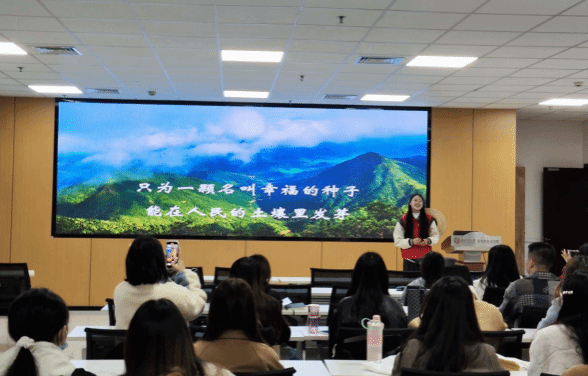 硕士第一党支部纪检委员罗馨梦同志进行了《大山的女儿——黄文秀》微党课讲授。黄文秀的事迹,激励了与会同学们为党和人民的事业担当作为,用生命诠释最美青春的信念。