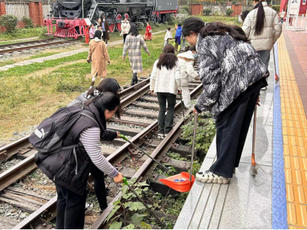 12月2日科学家精神基地清洁维护行动开展。当天15时,全体志愿者在基地门口集合并领取工具。重点进行了垃圾清扫和枯枝落叶的集中处理。志愿者们行走在铁轨之上,也仿佛是在历史的漫漫古道上穿行,进行跨越时代的对话。他们手持垃圾钳,细心地捡拾机车周围散落的垃圾。志愿者们扫除的是垃圾,收获的是精神上的回响共鸣。每一次的清扫,都是对过去的尊重和对未来的期待。他们的身影在阳光下闪闪发光,闪烁着勤劳和坚韧的光芒。