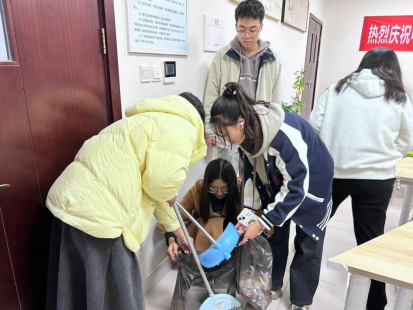 11月29日马院自习室清扫活动开展。当天晚上21时,志愿者已在三号教学楼集合完毕,在领取清扫工具后集体前往马院自习室。由于学院提前发布清扫通知,此时自习室内的书籍已被基本清空。志愿者们在进行简单分组后迅速开展清理消杀工作。三组相互协作,高效清扫自习室的每个角落,全面清除安全隐患,进一步优化学习环境。