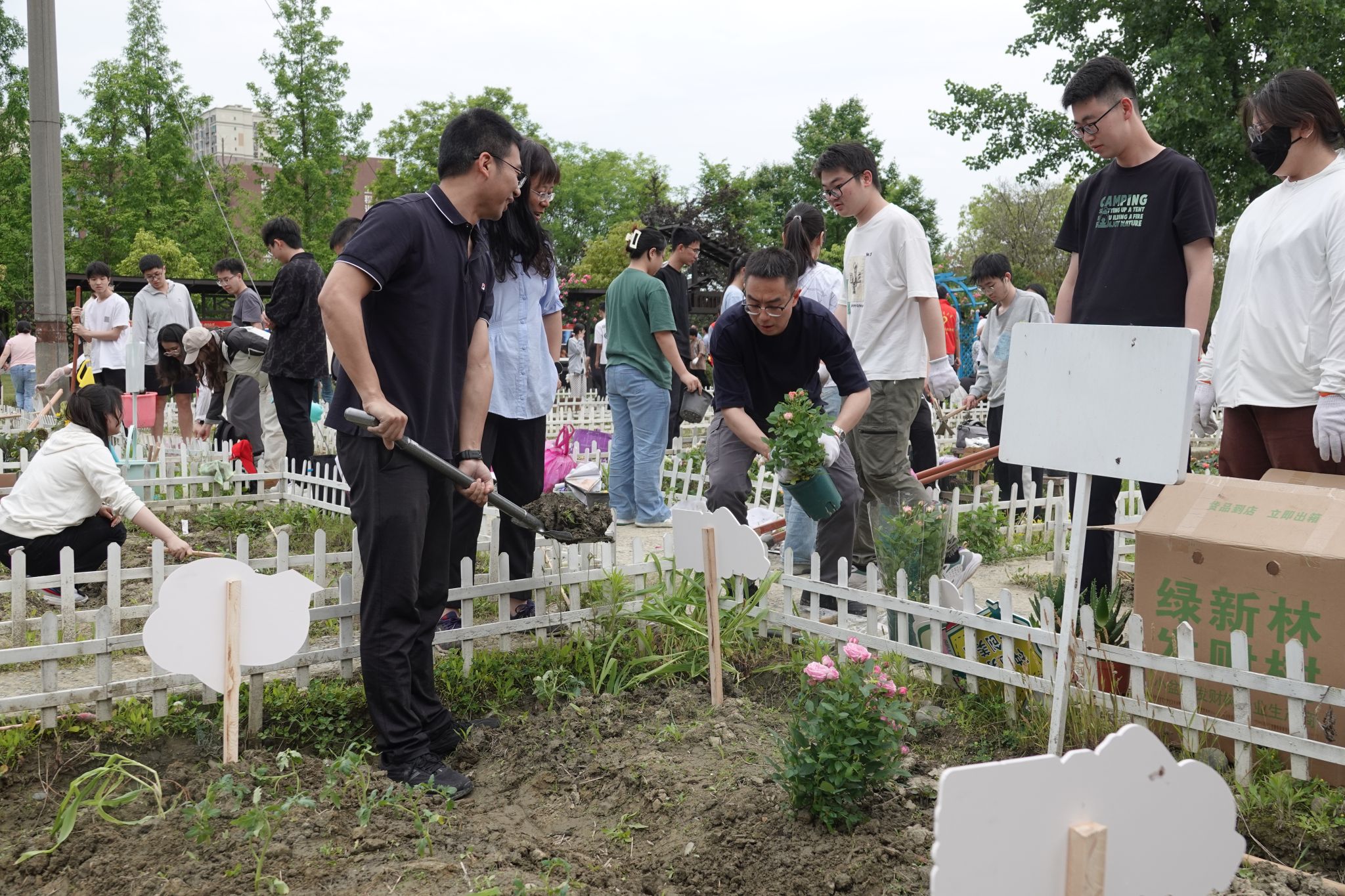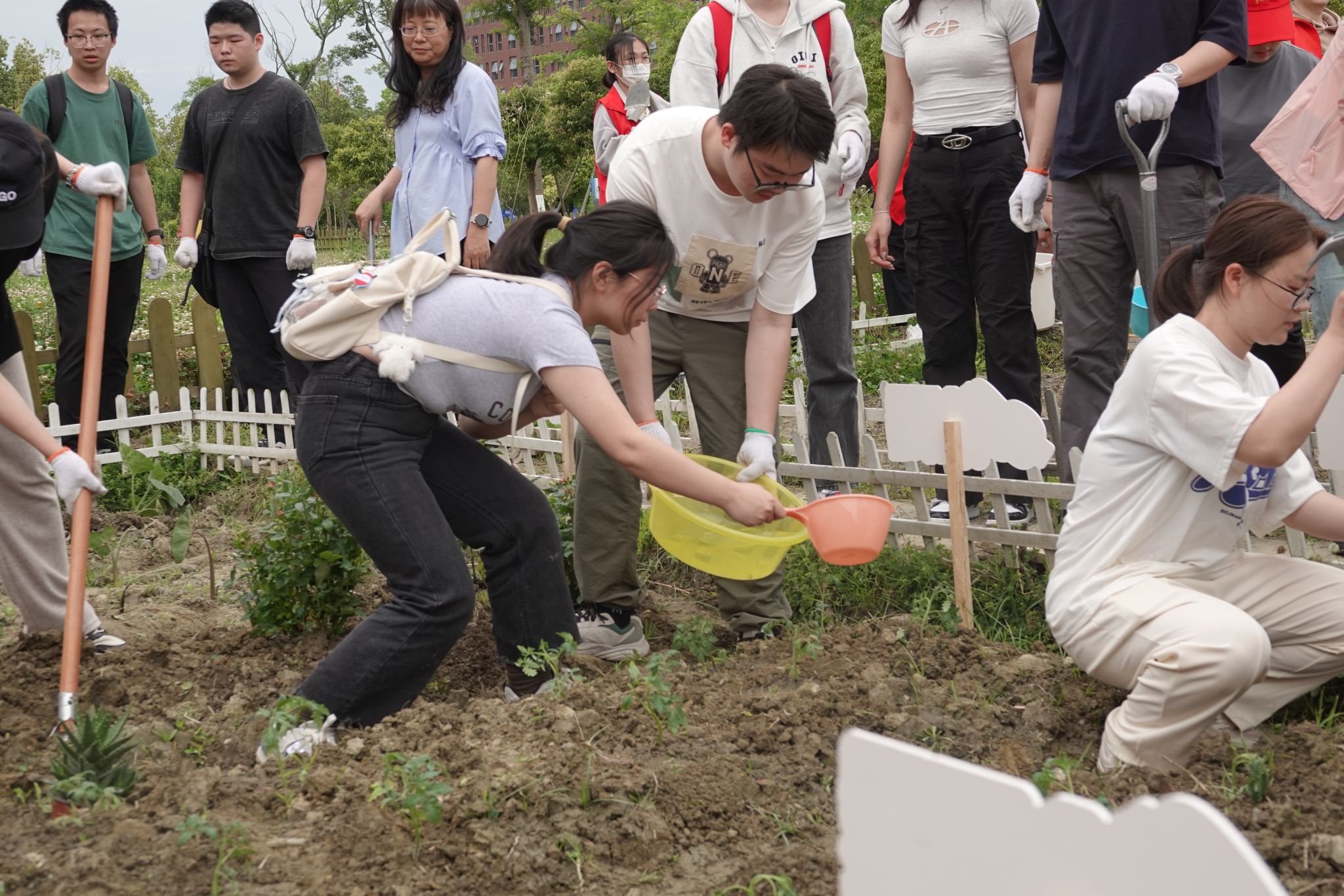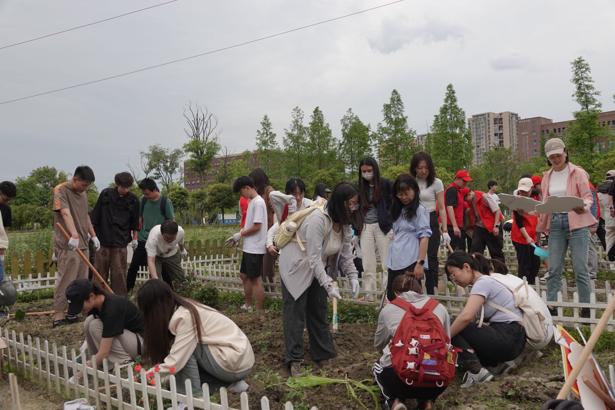 近20名同学带着劳动工具和种子、幼苗,来到“开心农场”开展集体劳动实践。学院执行院长田永秀、副院长胡子祥、党委副书记邓秀芸以及全体辅导员老师也来到农场与同学们一起劳动。