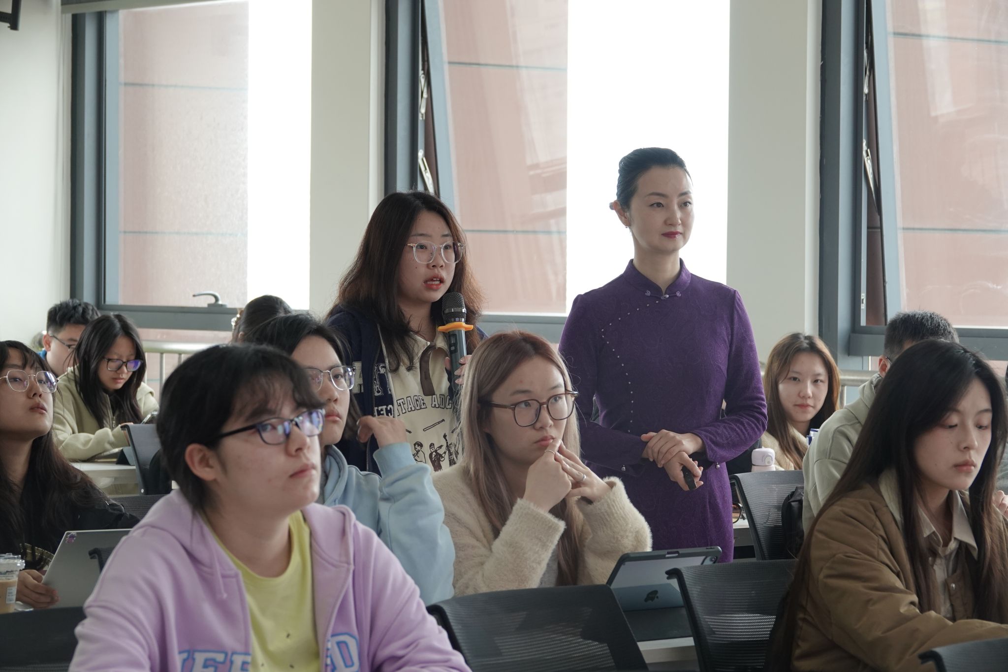 唐丽娟老师以工作职场创设情境,结合自身生活与工作经历,以亲切自然的方式,向大家讲述了生活与工作各方面的礼仪规范。无论是在日常生活中与人见面握手,还是在工作岗位上待人接物,都蕴含着为人处世的礼仪学问。在本次讲座中,唐老师现场指导同学们的说话、走路及入座的身体仪态,让同学们将讲解与实操结合起来。在着装方面,唐老师重点强调服装的得体性,指出服装在社交中具有建立第一印象、体现尊重等重要作用,增强了同学们对日常服装与职业服装的理解,有利于同学们根据不同场合选择得体服装。随后,唐老师亲自演示几种丝巾系法,强调服装上的小配饰也对职场穿搭有较强增色作用,同学们得以将服装礼仪这一概念从理论理解层面转变为更生动的现实体验。