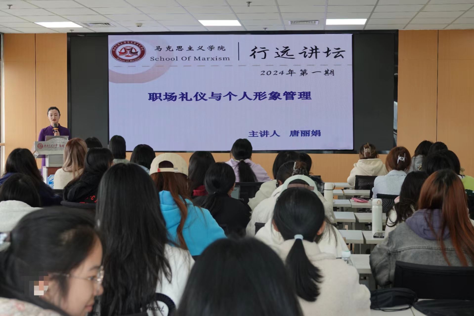 于3月18日14:00在学院报告厅X31325举办了2024年行远讲坛第一期活动,“不学礼,无以立——职场礼仪与个人形象管理”专题讲座。我院邀请到了曾主持完成四川省人文社科项目、现任教于我校人文学院副教授唐丽娟老师作为主讲人。在这场讲座中,大三学生集体参加学习,占参与者的三分之二。