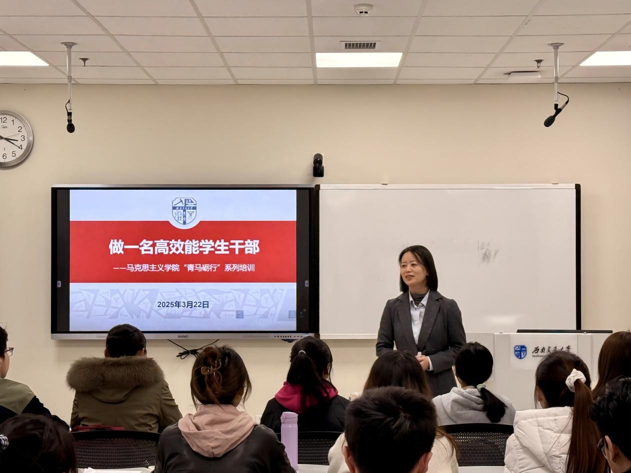 在X30304举办学生干部培训会。本次讲座由学院党委副书记邓秀芸担任主讲人,为本、研学生骨干带来了一场思想启迪与实践指导兼具的精彩讲座。