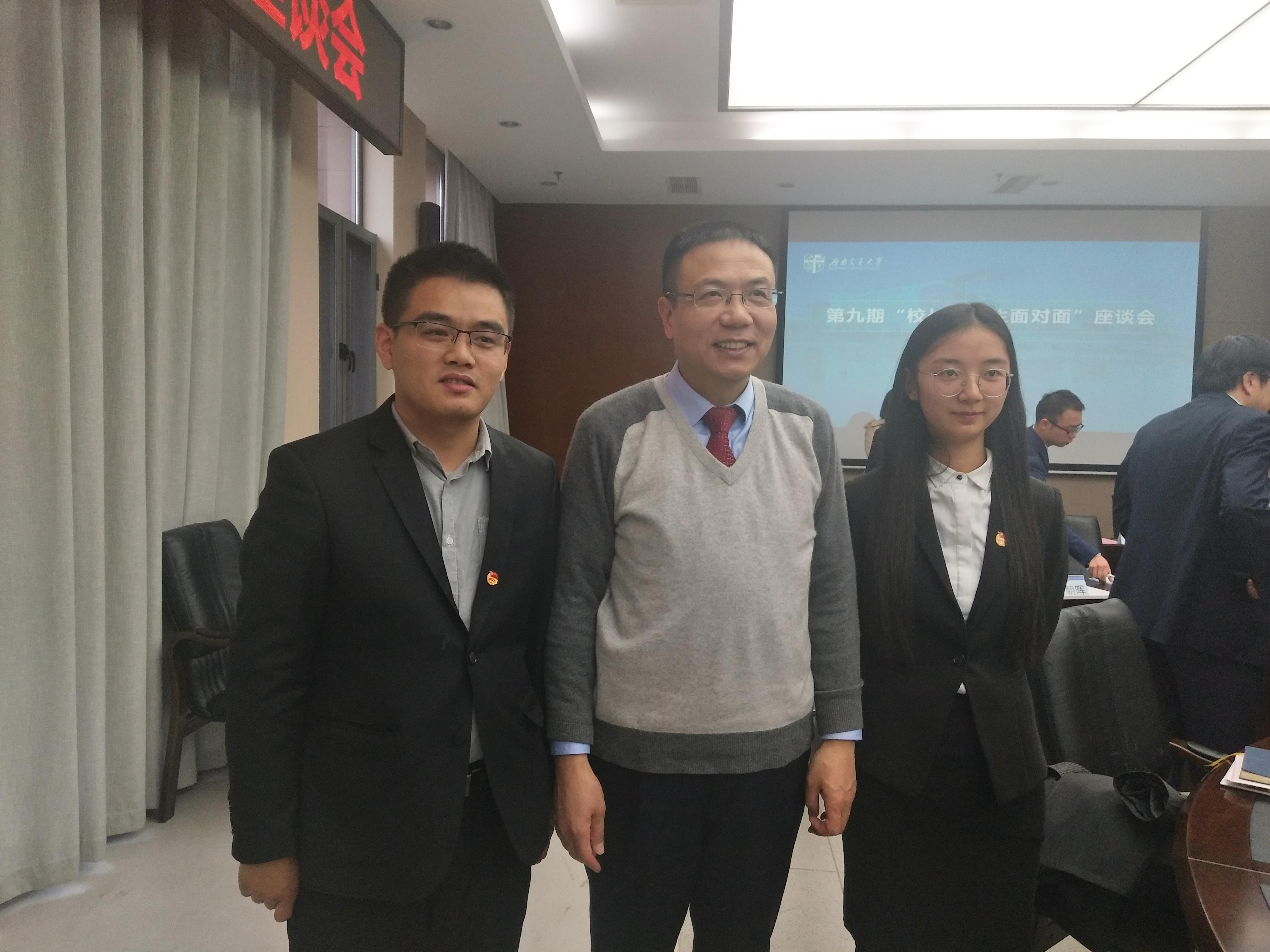 党委副书记、校长徐飞,校党委常委沈火明与10名来自不同年级、不同专业的学生代表进行座谈。座谈会由沈火明主持。我院2015级博士研究生石立春、2017级本科生周璇参加此次座谈会。