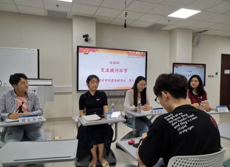 最后,数学学院团委副书记周义杰主持进行提问交流环节。优秀学生干部罗乔美、龚禹竹、张佳豪、安静泽先后对“如何平衡学习与学生工作”“如何调动同学们的积极性”“如何提高‘青年大学习’的参与度”“对学生干部的三个要求”等问题进行了详细回答。