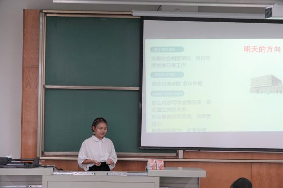 在吴昊向新生们介绍了学生会的结构以及相关部门的负责人后,综合权益部与文体部的负责同学进行了有条不紊的宣讲。首先,综合权益部部长张婉欣向新生们介绍了组织的相关事宜,生动活泼的讲话调动了宣讲氛围,接着,文体部部长万思敏耐心地向新生们介绍了文体部工作,并希望大家踊跃报名参与。