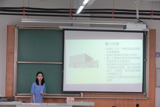 青协会长时玉豪介绍了青协的成立初衷,综合办公室副部长霍紫盈与活动部部长赵子涵分别介绍了青协两个部门的成员,工作内容以及未来的改进方向,最后时玉豪动员新生们积极参会,表达了齐力续写青协美好篇章的期盼。