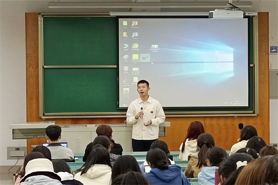 最后,龚禹竹同学侧重讲如何丰富大学生活,怎样成长为一个完整的人。她结合自身大学学习工作经历,从学习、科研、竞赛活动、学生工作、考研五个方面为同学们提供了经验和建议,并对大家表示祝福和期待。