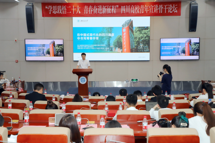 为深入学习宣传贯彻习近平新时代中国特色社会主义思想和党的二十大精神,进一步促进四川高校青年宣讲骨干联学联动,充分发挥青年大学生在理论宣讲中的先锋作用,凝聚起磅礴奋进的青春力量,2023年4月17日下午,“学思践悟二十大 青春奋进新征程”四川高校青年宣讲骨干论坛在西南财经大学隆重举行。会议由西南财经大学主办,西南财经大学党委副书记、副校长李永强,党委宣传部、学生工作部、校团委、AV推荐