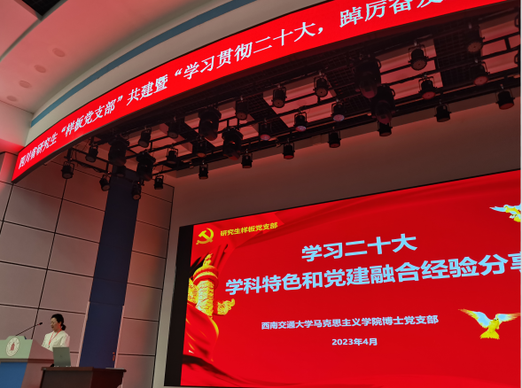 为深入学习贯彻党的二十大精神,促进各高校间、党支部间的交流,四川省研究生“样板党支部”共建暨“学习贯彻二十大,踔厉奋发新征程”主题党日活动于4月20日上午9:30在四川大学望江校区东三教演播厅举行,我院团委书记、研究生辅导员赵晨,博士党支部党员代表等参加。