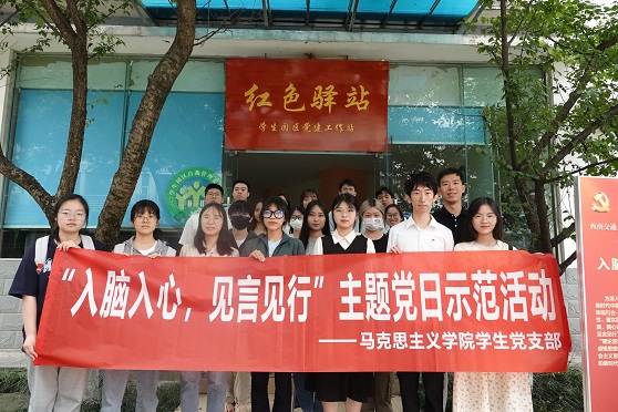 学生党支部主题党日示范活动圆满结束,与会同志在红色驿站外进行合影留念。