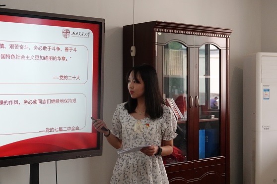 硕士第一党支部高源翎同志宣讲党的二十大报告“三个务必”内容。高源翎同志以“学懂悟深三个务必,行稳走好新的征程”为主题,宣讲了“三个务必”的丰富内涵、内在逻辑和重大意义,为党员同志们更好理解和学习“三个务必”提供了方向指引。