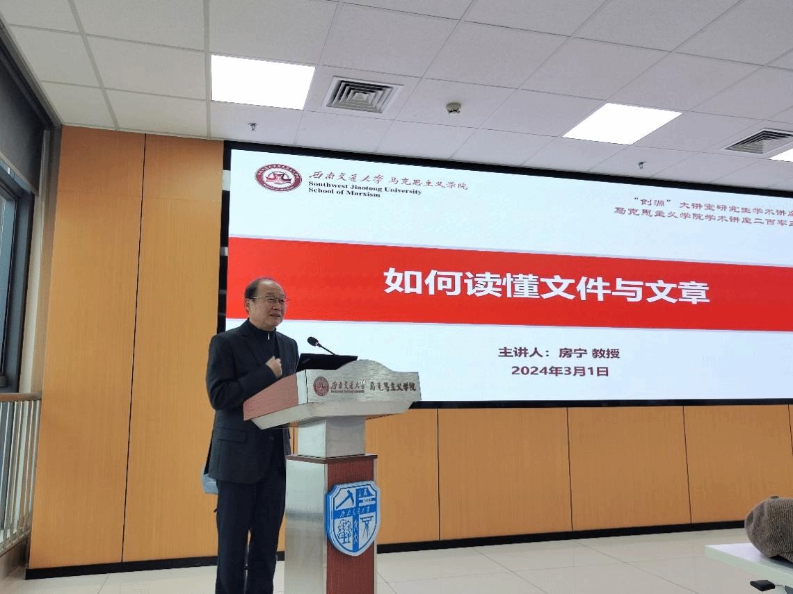 房宁教授以“如何读懂文件与文章”为题,结合自己常年做政治学研究和用“脚底板做学问”的实际,站在马克思主义理论学科的视角,从政治语义学及其重要性谈起,具体分析了语言的二重性即表意和隐意,系统解读了政治语汇的惯性、弹性及暗示性,并在此基础上重点揭示了读懂文件与文章的一般方法与特殊方法。在这场讲座中房宁教授引经据典、妙语连珠,现场气氛热烈、思想气息浓厚。
