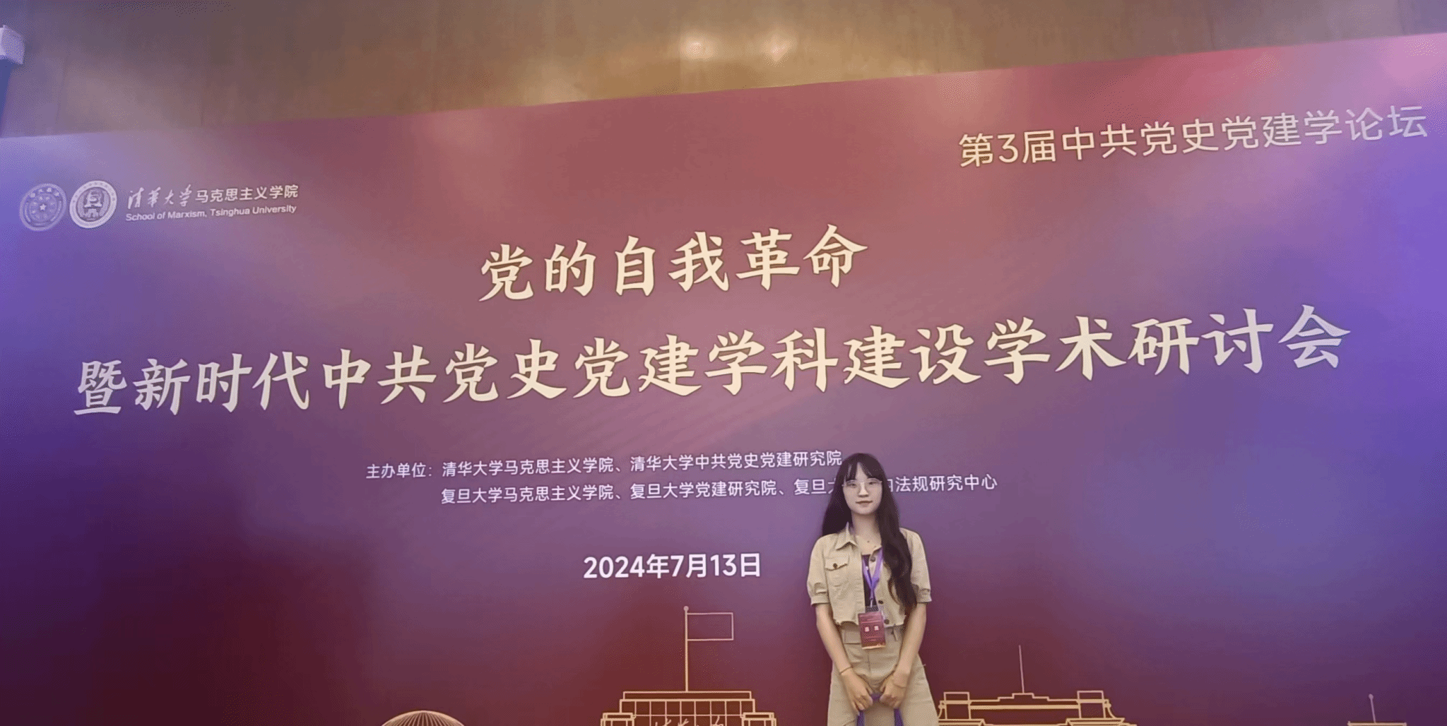 、复旦大学党建研究院、复旦大学党内法规研究中心联合举办的“党的自我革命暨新时代中共党史党建学科建设”学术研讨会在清华大学召开。来自我院的2022级硕士研究生王雪提交的《新中国成立初期以党的自我革命引领社会革命的实践探索(1949-1953)》成功入选并受邀参加此次论坛。