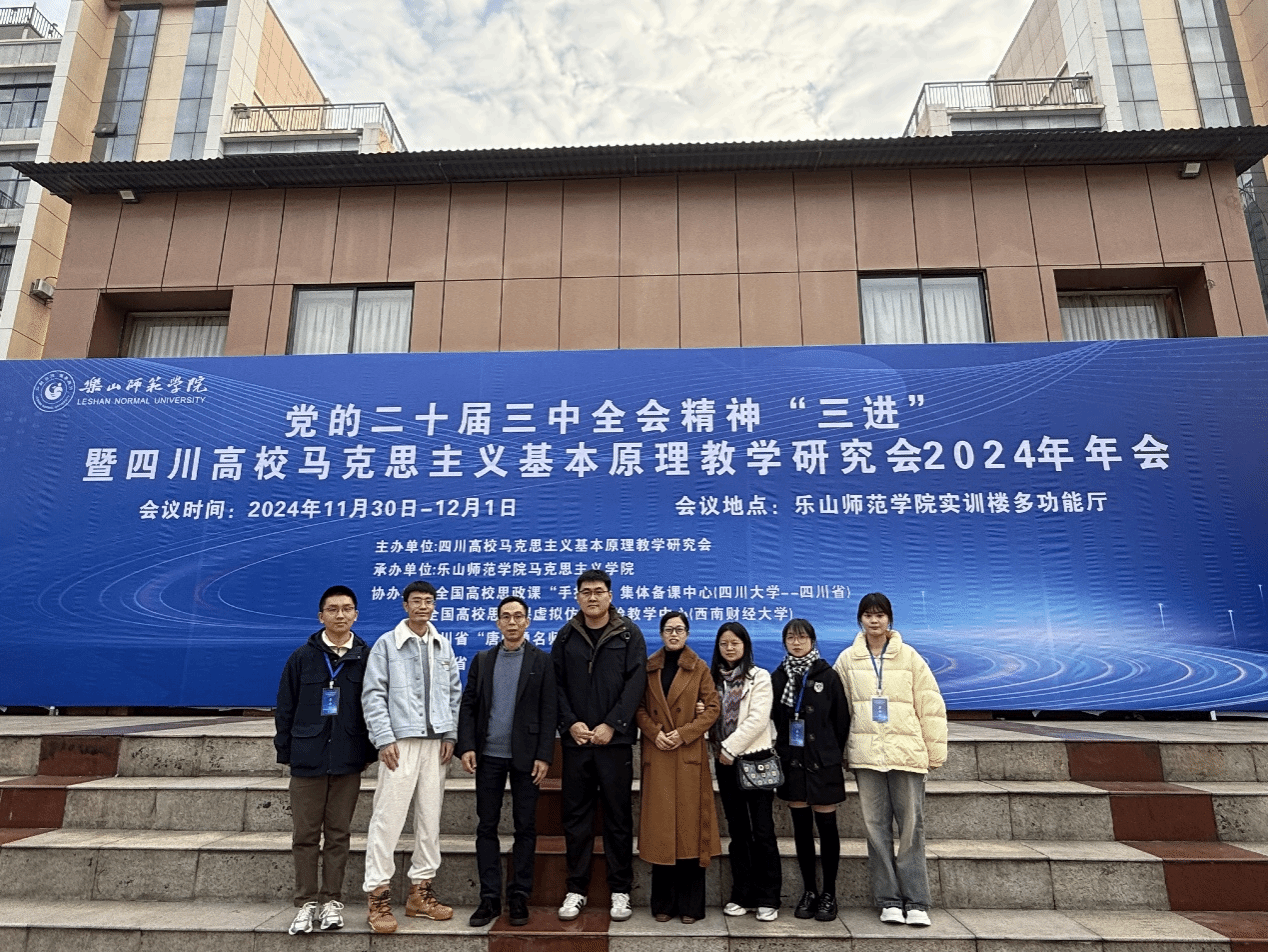 承办的“四川省高校‘马克思主义基本原理’教学研究会2024年年会”在乐山师范学院召开。来自省内50余所高校300余名“原理”课教师出席了本次会议。我院马克思主义基本原理教研室颜军教授、李渊博副教授、杨德霞副教授、罗敏副教授、袁雨宸老师以及部分硕士研究生参加了此次会议。