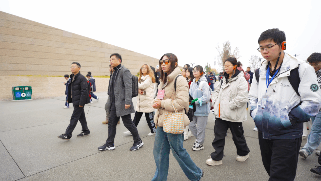 犀浦校区图书馆前升旗台旁乘坐大巴出发,于十点二十分左右到达三星堆博物馆。随后,全体师生在讲解员的带领下开启一场文明对话之旅。