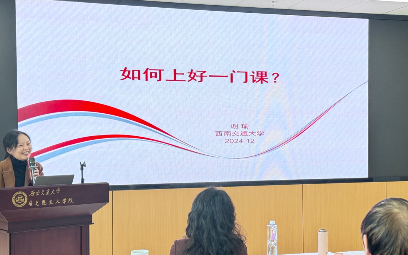 谢瑜副院长分享了如何站稳讲台的经验。她认为,有理论深度、沟通能力和个性的老师更容易在讲台上站稳脚跟。她强调,教师应构建关于教学的系统性主张,注重“对话式”教学的实施,授人以鱼不如授人以渔,引导学生主动思考和参与课堂。