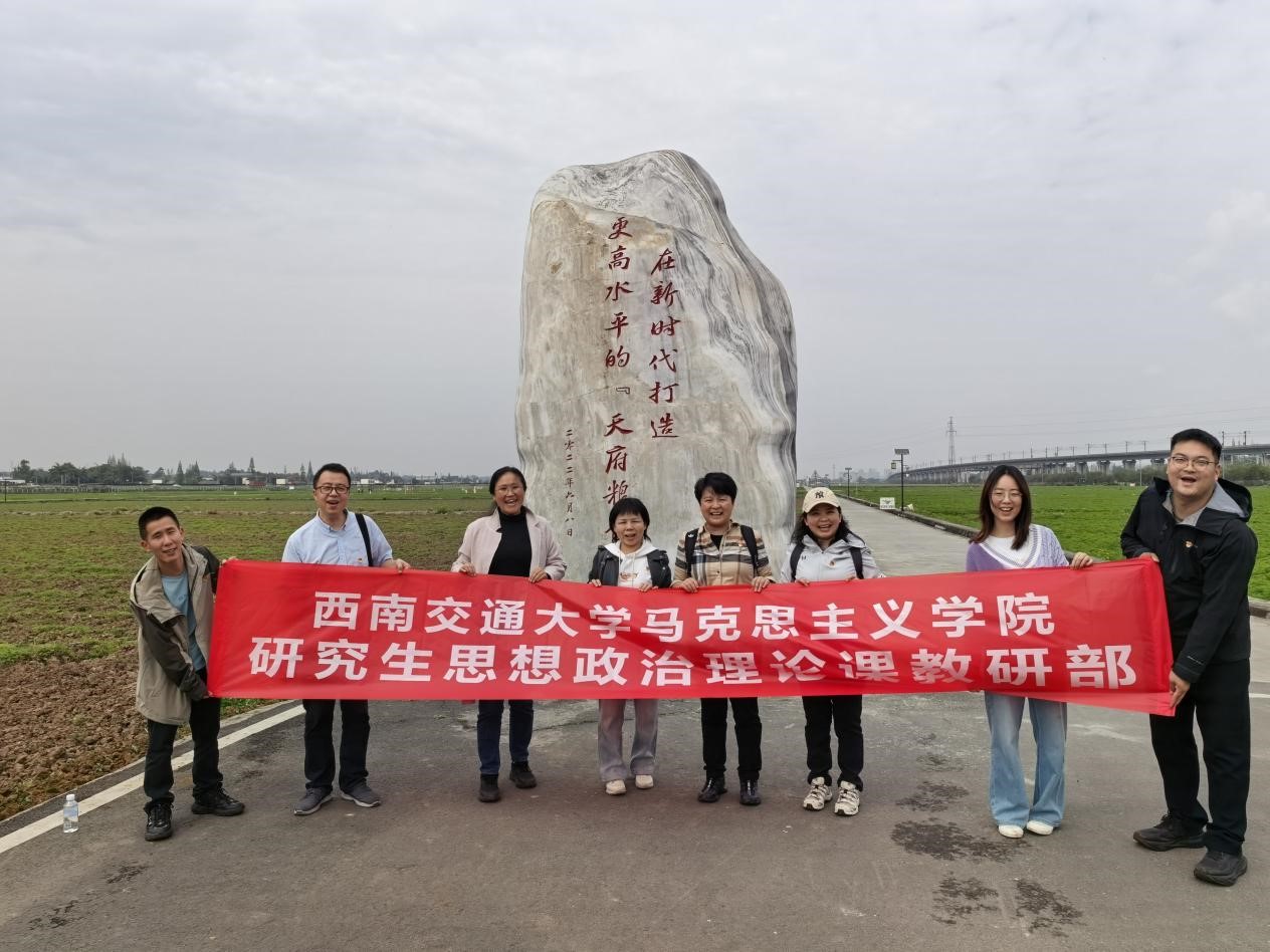 研究生思想政治理论课教研部暨党支部,在学院副院长谢瑜、章娟的带领下,前往眉山市东坡区太和镇永丰村,开展“跟着总书记的考察足迹·感悟眉山实践”主题党日活动,也是本年度首次暨总第四次“祖国大地上的集体备课”活动。此次活动旨在从总书记的考察足迹中感悟思想伟力、汲取奋进力量,秉持“教育者先受教育”的理念,通过“外出备课、实地调研”的方式,引导教师党员从“天府粮仓”的实践现场汲取养分,将维护国家粮食安全、实施乡村振兴的生动案例精准融入研究生思政课堂。