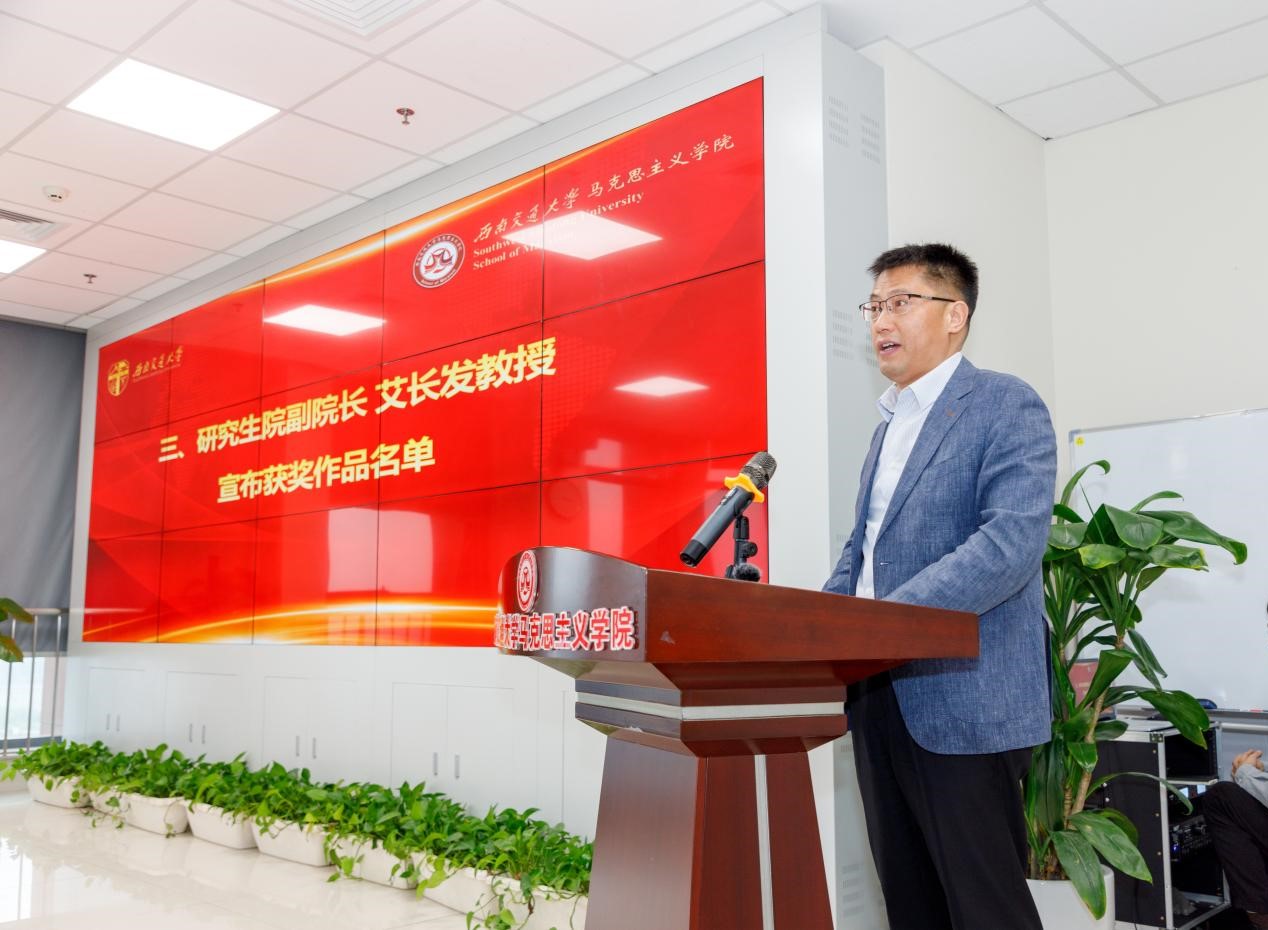 《中国精神》微视频大赛颁奖典礼环节,与会成员集体观看了微视频大赛宣传片,随后由研究生院副院长艾长发教授宣布了《中国精神》微视频大赛获奖作品名单,并由出席会议的领导嘉宾为以上获奖团队代表颁奖。