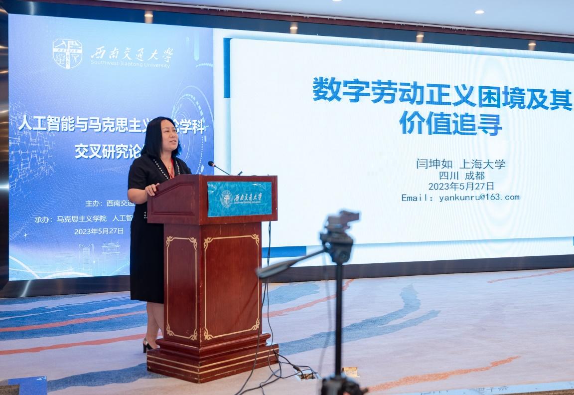 闫坤如教授以《数字劳动正义困境及其价值追寻》为主题进行了发言。闫坤如教授提出,数字劳动相对于传统劳动呈现出了劳动空间的拓展、劳动时间的延长、劳动强度的提升等新的特征,使得数字劳动剥削具有延伸性、隐蔽性、虚拟性等特点。数字劳动导致数字劳工的主体性日益衰弱,数字劳动的“娱乐化”使得数字剥削更加隐蔽。在这样的背景下,实现数字劳动正义,需要唤醒数字劳工的主体意识,增强数字劳工的主体性。