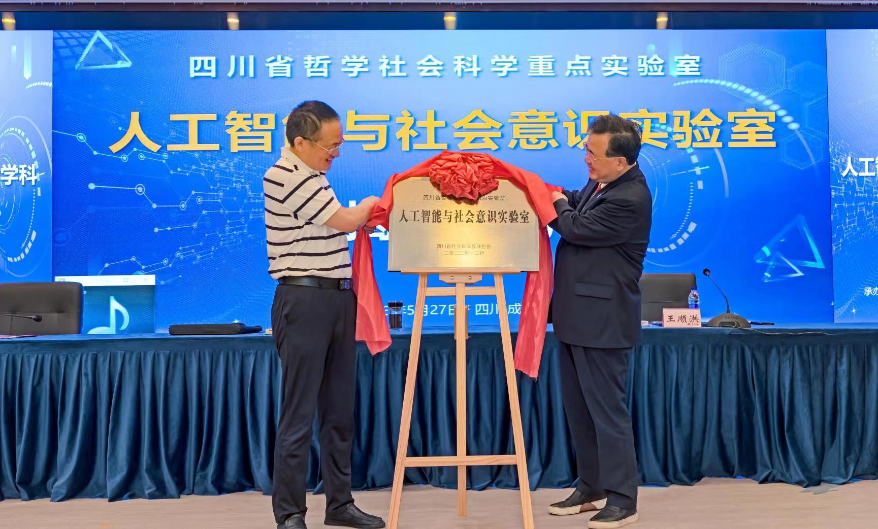上午9:30,王顺洪、罗仲平共同为人工智能与社会意识实验室揭牌,并为在场的人工智能与社会意识实验室学术委员会委员颁发聘书。