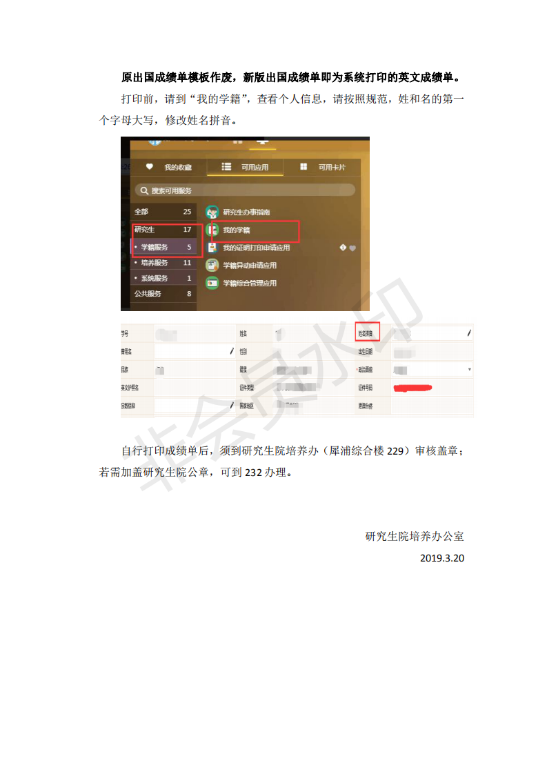 所有研究生可登录研究生院新系统打印中文、英文成绩;