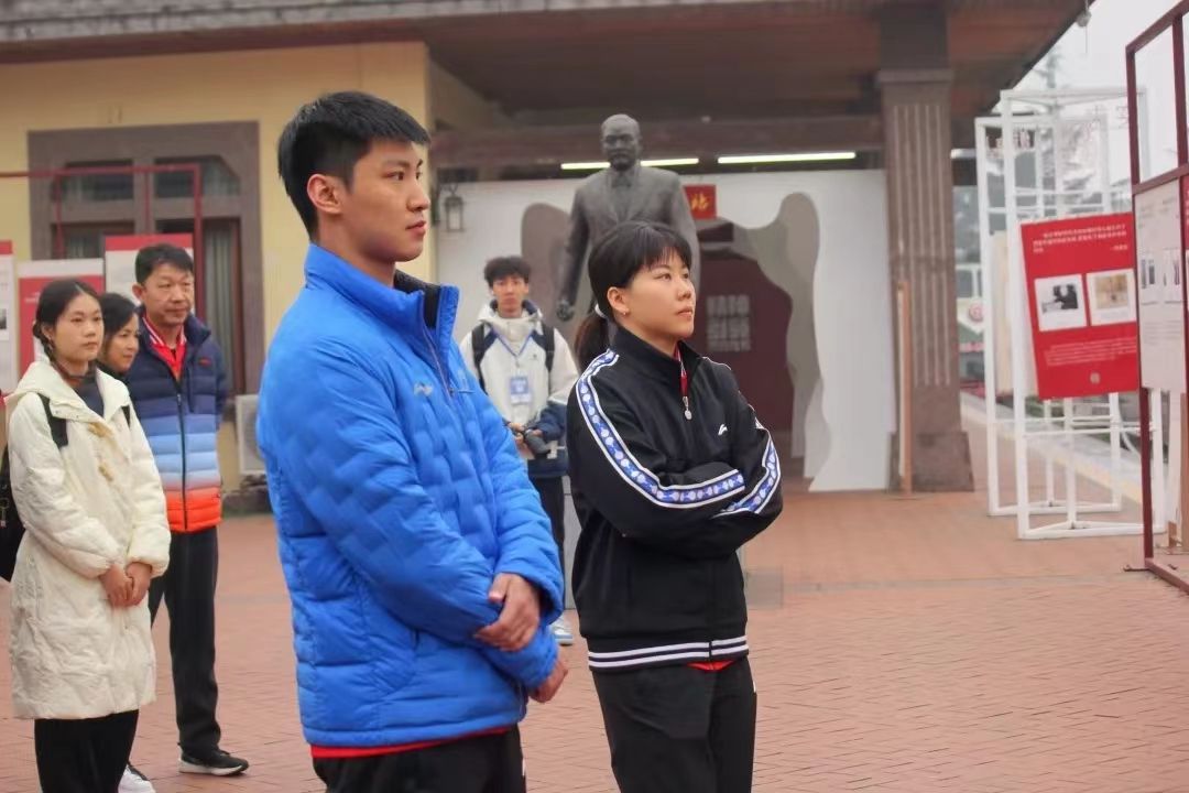 国乒队成员陈幸同、薛飞等世界冠军就交通强国科学家精神教育基地第一部分设置的“爱国、创新、求实、奉献、协同、育人”六个展厅进行参观,了解我校科学家和杰出科技工作者的先进事迹;观看第二部分设置的展示我校新一代科技工作者及其所在团队践行、传承科学家精神,为实现科技自立自强奋斗不懈的典型案例展览内容;了解新时代我校师生传承和弘扬科学家精神的各类实践活动。