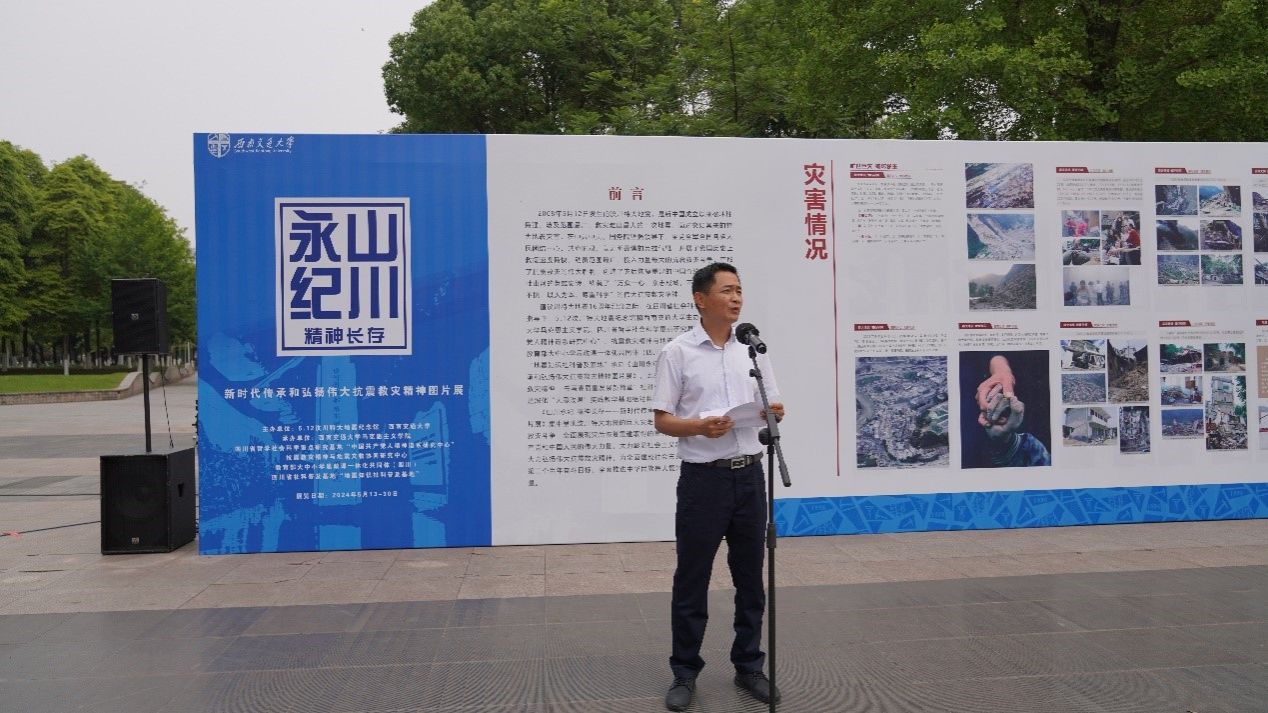 、四川省哲学社会科学重点研究基地“中国共产党人精神谱系研究中心”、抗震救灾精神与地震文物协同研究中心、教育部大中小学思政课一体化共同体(四川)承办的展览。此次展览既是四川省社会科学界“传承伟大抗震救灾精神 书写高质量发展新篇章”科学普及活动周进校园活动,也是深化“大思政课”实践教学基地结对共建的场馆进校园活动。