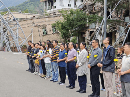 6月7日上午,学院师生代表来到了北川老县城地震遗址。北川老县城地震遗址是目前世界上保留的规模最大,最为完整的地震灾难遗址。这里不仅是罹难同胞的纪念地,还是汶川特大地震抗震救灾的主战场,中华儿女在这里谱写了一曲曲可歌可泣的英雄篇章,孕育形成了伟大的抗震救灾精神。师生们缓步走入,一边倾听讲解员的讲述,一边驻足观望。在学院党委书记廖军的带领下,师生们在此开展了简短而庄重的献花仪式。
