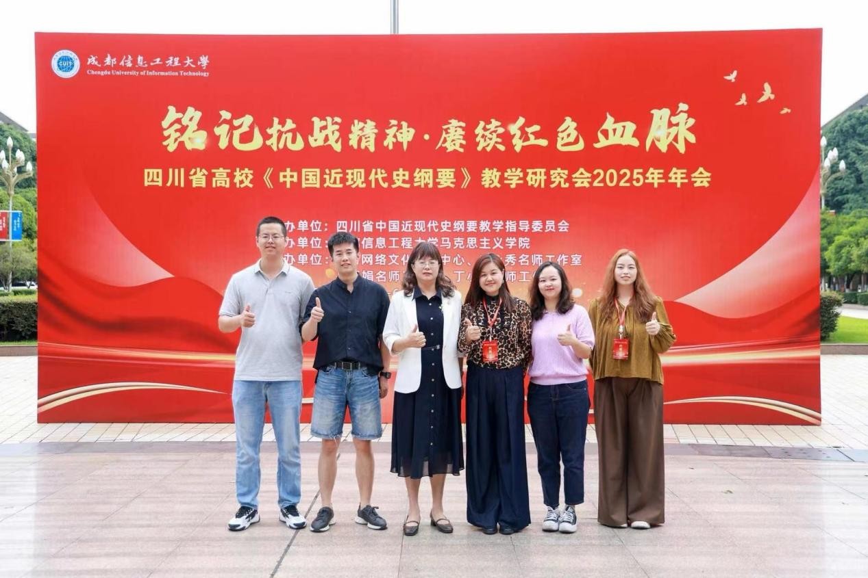 承办,四川网络文化研究中心、田永秀名师工作室、韩晓娟名师工作室、丁小珊名师工作室协办的“四川省高校《中国近现代史纲要》教学研究会2025年年会”在成都信息工程大学隆重举行。本次年会以“铭记抗战精神·赓续红色血脉”为主题,旨在深入学习贯彻党的二十大精神,落实习近平总书记关于“用好红色资源、赓续红色血脉”的重要指示精神,纪念中国人民抗日战争暨世界反法西斯战争胜利80周年。
