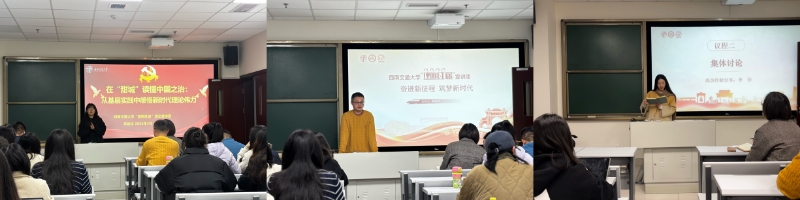 主备人宣讲环节,两位成员依次登台进行试讲展示,带来主题鲜明、内容丰富的宣讲分享。常唯依以《在“甜城”读懂中国之治:从石牌坊到致富路——从基层实践中感悟新时代理论伟力》为题,从隆昌发展实践切入,将基层发展故事与中国之治理论深度融合,让理论宣讲更具实践温度。卿洋鸣围绕《2026年两会学习专题宣讲》展开分享,聚焦两会核心精神,系统解读两会热点内容,传递新时代发展声音。两位成员的试讲各有特色,为后续宣讲内容打磨奠定了良好基础。