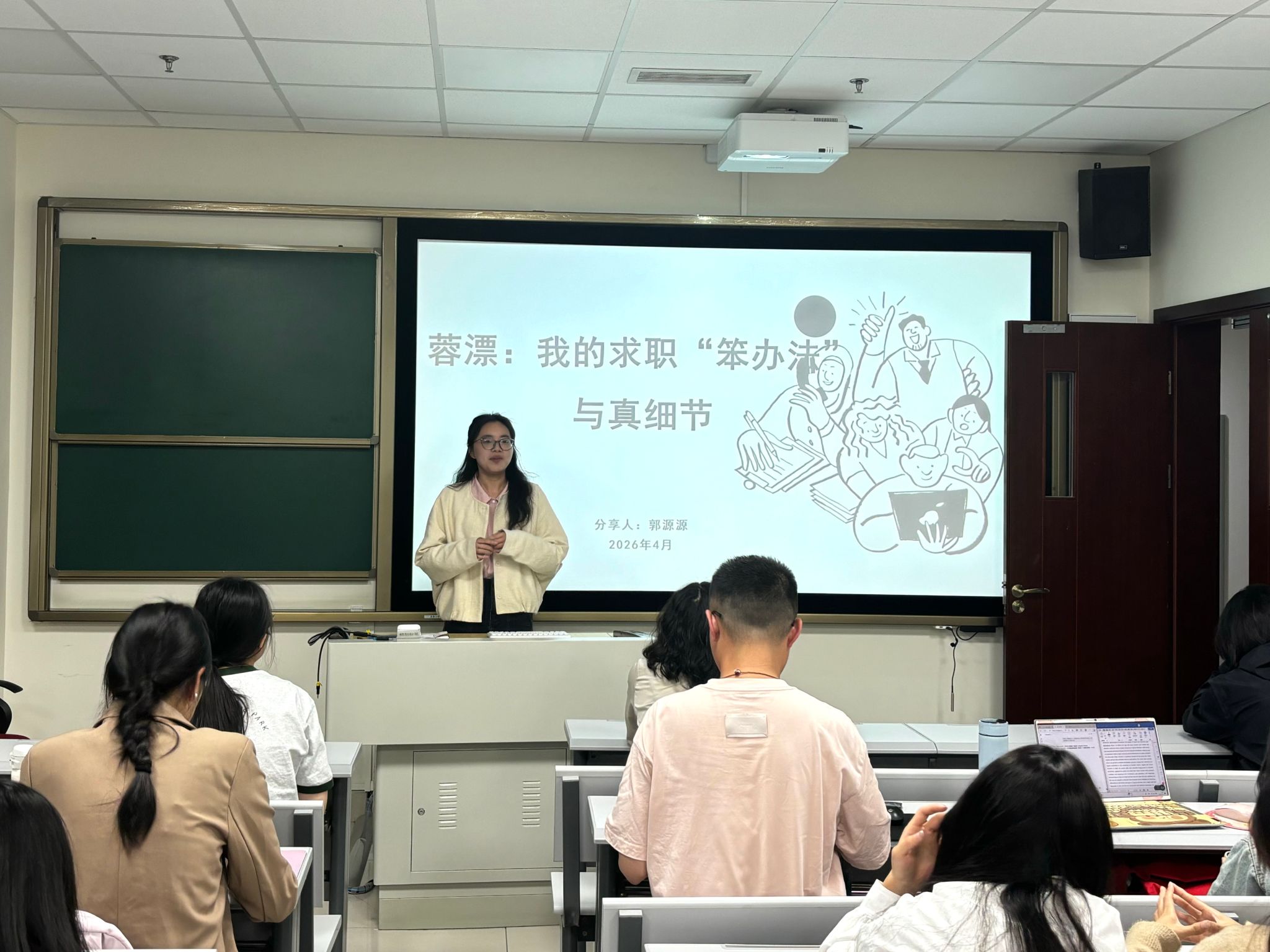 于4月16日在X30404举办“灯塔”系列活动——星火照研途·教师编、考公专场分享会。活动特邀2023级硕士研究生赵琳、向万丽、郭源源三位同学,她们围绕备考策略、笔面试技巧与职业规划等话题,结合亲身经历进行了系统分享,为同学们提供了切实的经验借鉴。