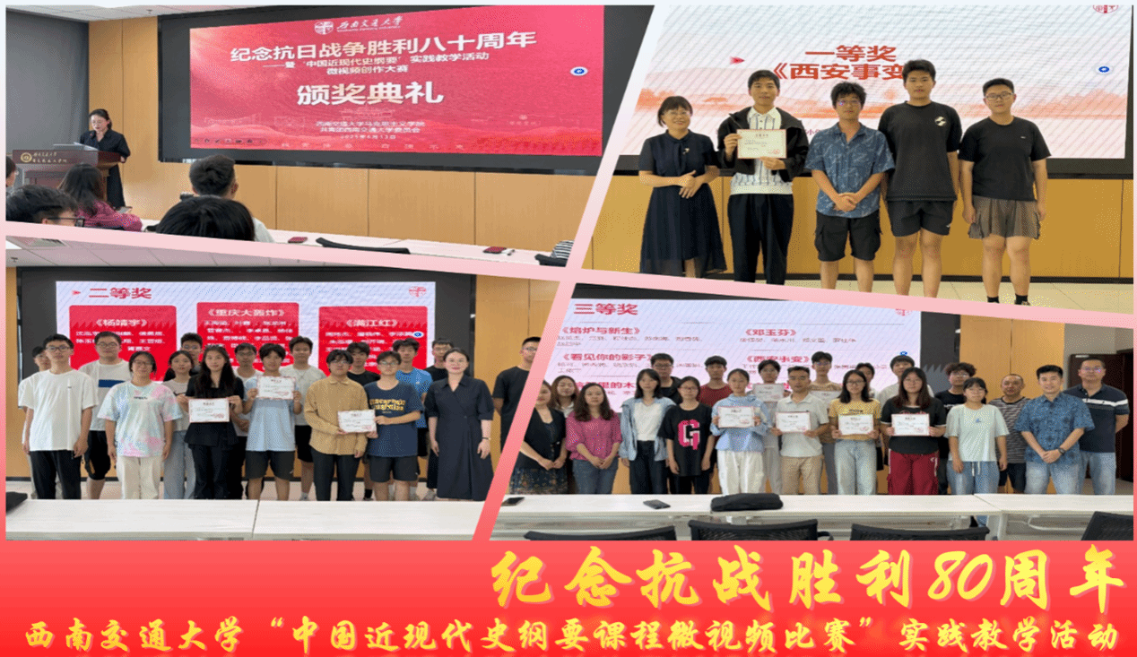 举行了纪念中国人民抗日战争胜利八十周年暨“中国近现代史纲要”课程实践教学微视频创作大赛颁奖典礼。马克思主义学院田永秀院长、校团委郑源副书记和中国近现代史纲要课程的教师代表出席颁奖仪式。