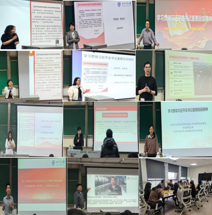 近日,习近平总书记给四所交通大学全体师生的回信,激发了校内外的学习热潮。研究生思政课教研部精准回应学生关切,以回信精神为引领,第一时间推动回信精神进课堂、进头脑。通过整体融入课程设计、具体切入知识点教学、与交大校史校情深度结合等多种路径,有效破解研究生思政教育主阵地“最后一公里”的难题,切实增强了研究生思政课的亲和力、针对性与实效性。