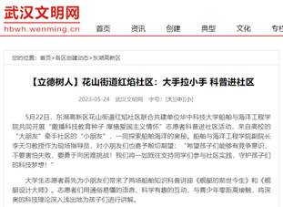 此外,我院充分发挥大学生专业特长和资源优势,依托全国舰船科普教育基地,走进社区开展科普报告、模型制作等科普活动,旨在更广泛的激发青少年探索科学技术的热情,让科创教育融入动手实践中,培养同学们的动手能力,将科创的种子植入心中。船海学院所开展的一系列社区志愿科普活动也曾受到学习强国、长江网、武汉文明网、光谷青年、楚天读书报等多家媒体报道。
