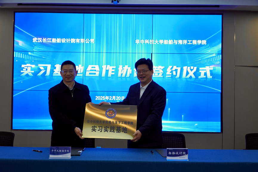 2月20日,我院与武汉长江船舶设计院有限公司举行校企共建实习基地签约挂牌仪式,双方开启深度合作新征程。武汉长江船舶设计院有限公司总经理刘皓、副总经理谢红剑、徐强,我院党委副书记李周密、副院长朱翔出席活动。