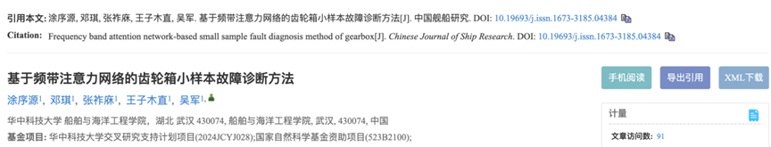 近日,中国科协舰船科学领域高质量科技期刊T1级期刊《中国舰船研究》在线刊发了船舶与海洋工程学院船海装备智能运维所在齿轮箱故障诊断领域的新成果,题为“基于频带注意力网络的齿轮箱小样本故障诊断方法”。我院2022级本科生涂序源为第一作者,2022级本科生张祚庥、2023级本科生王子木直、博士生邓琪为共同作者,吴军教授为通讯作者。