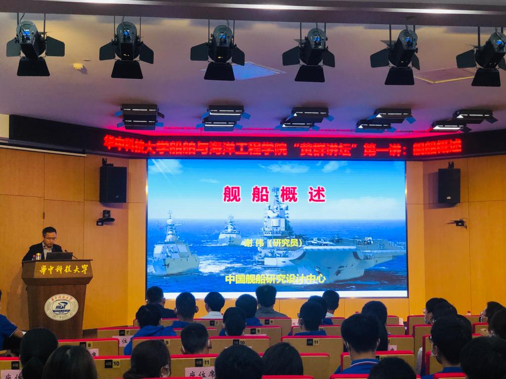最后,谢伟为同学们带来“黄群讲坛”第一讲——《舰船概述》,讲座由船海学院党委委员、副院长李天匀教授主持。谢伟的报告从舰船发展简史、我国海洋形势、舰船分类、舰船总体设计和后续发展方向等方面依次展开,内容丰富、深入浅出,为在座的师生开阔了视野、拓宽了思路、提供了最前沿舰船科学知识,对推动教师科研工作,促进学生坚定志向、成长成才具有重要的指导意义。