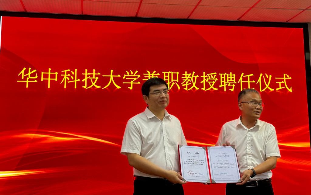 讲座开始前,李天匀为曾向阳颁发华中科技大学兼职教授聘书。