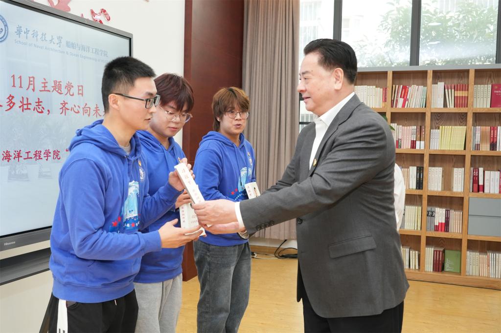 11月22日,校党委书记李元元走进紫菘学生活动中心,参加船舶与海洋工程学院黄群班党支部“青春多壮志,齐心向未来”主题党日活动。活动由黄群班党支部书记罗江主持。
