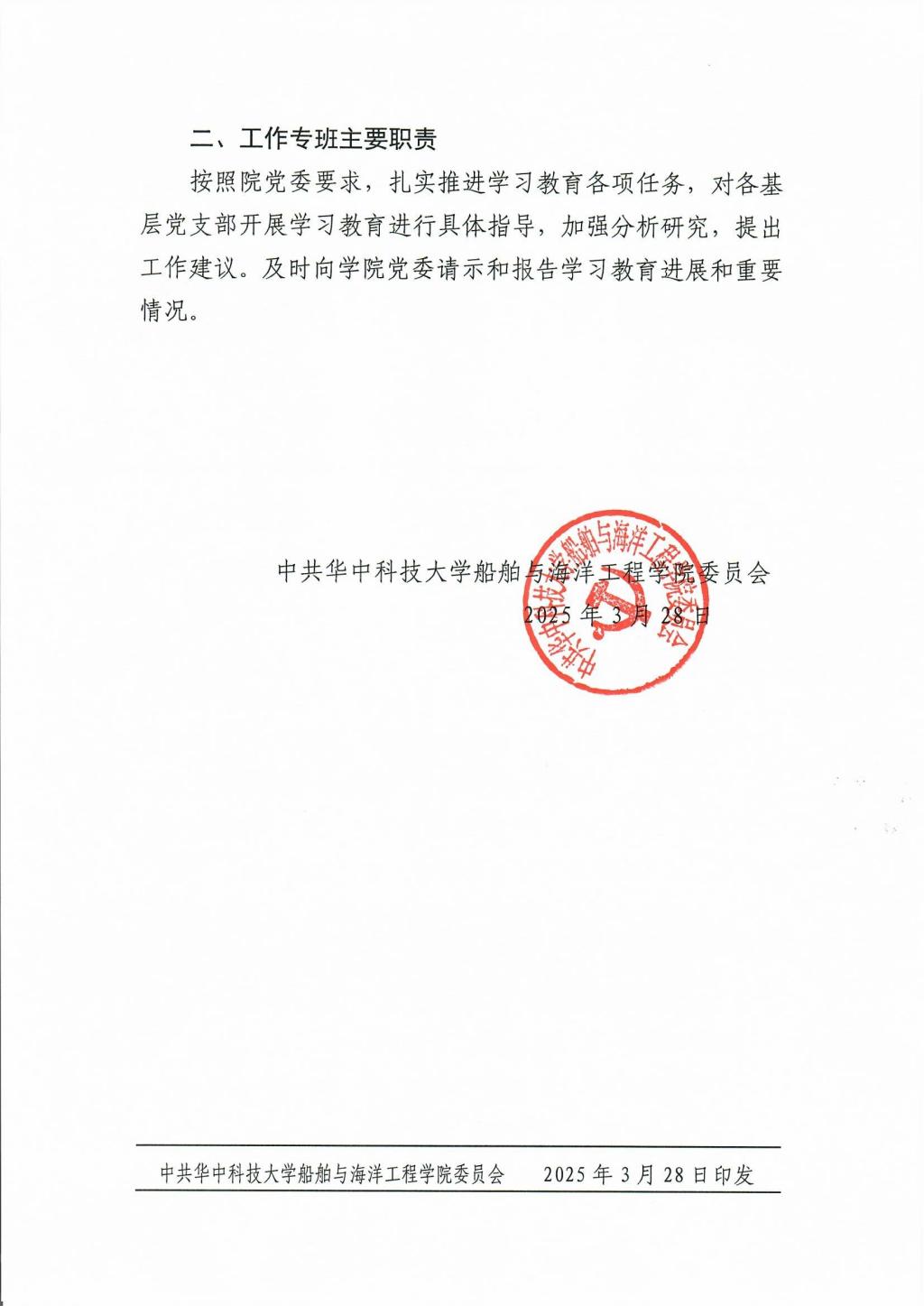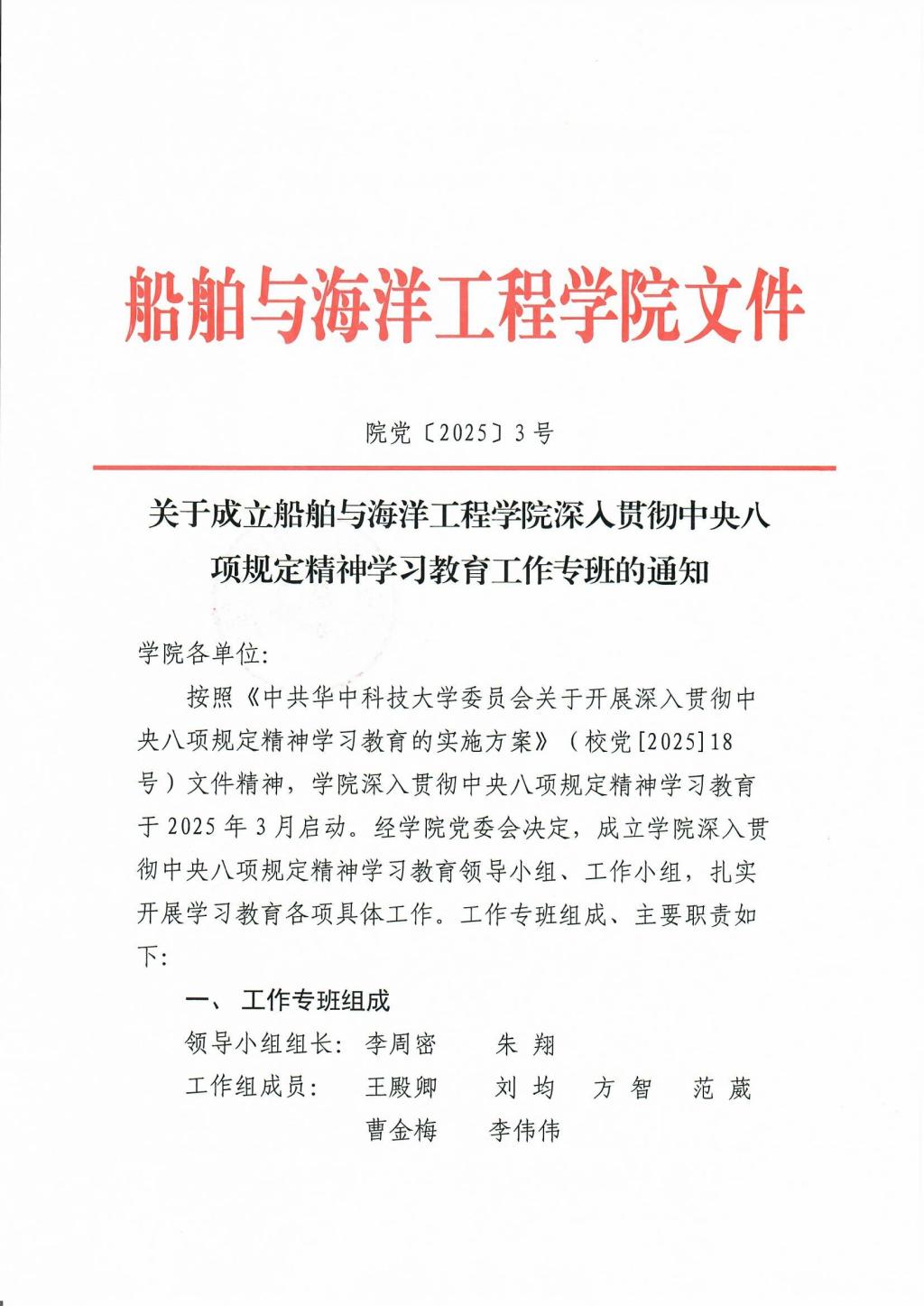 关于成立船舶与海洋工程学院深入贯彻中央八项规定精神学习教育工作专班的通知