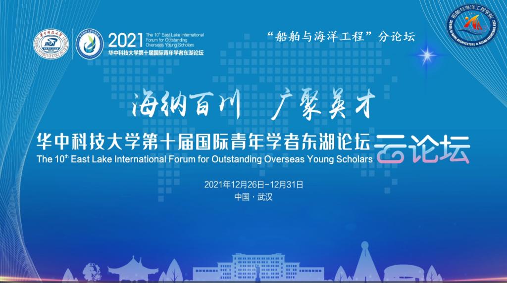 2021年12月26日,华中科技大学第十届“国际青年学者东湖论坛-船舶与海洋工程分论坛”在我院举行,此次论坛选拔了来自清华大学、英国南安普顿大学、新加坡国立大学、芬兰阿尔托大学的4位海内外优秀青年学者参会。