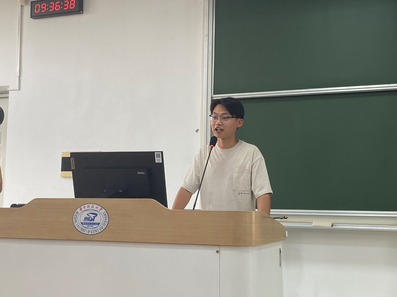 随后,船硕2401班孟嘉伟作为研究生新生代表发言,他讲道科技创新是强国永恒的主题,作为船海学院的一名研究生学子,要秉承"明德厚学,求是创新"的校训精神,积极投入科学研究,练就过硬本领,掌握前沿科技知识,关注船海领域的前沿动态,将论文写在祖国的蓝色国土上。