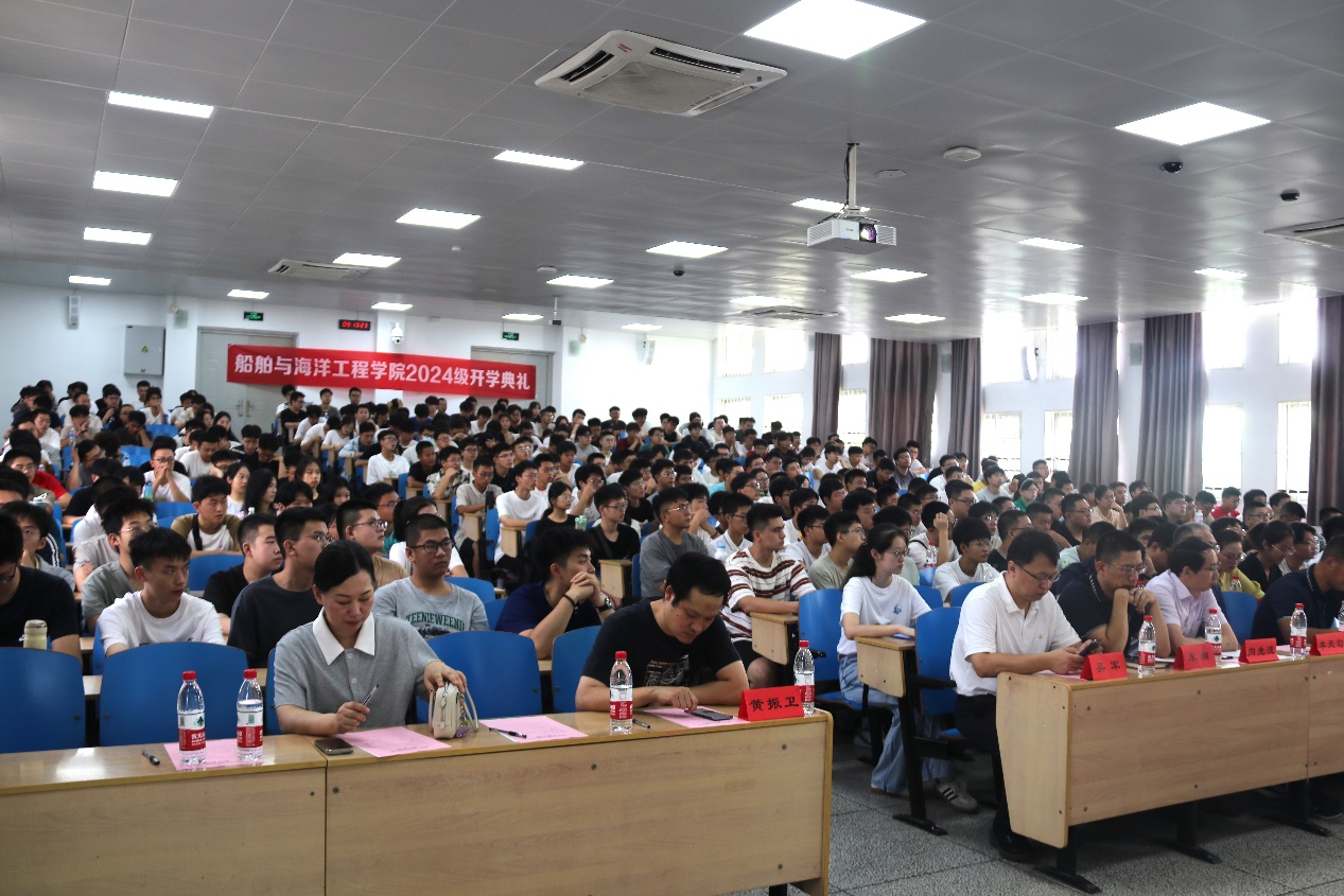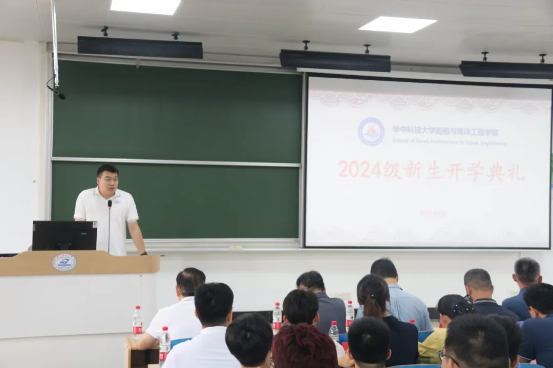 2024级船海学院新生开学典礼在东十二楼F201教室举行,学院党政领导、教师代表及2024级全体本科、研究生新生参加会议,会议由船海学院党委副书记李周密主持。