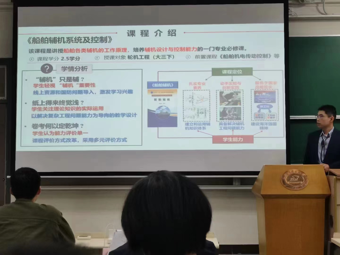 船海学院高度重视教师教学竞赛。在本科生院的领导下,学院每年组织教学竞赛初赛。今年戴维老师脱颖而出获得学校决赛资格,参赛课程为《船舶辅机系统及控制》。戴维老师基于面向产出的教育理念(OBE)进行了课程设计,以学生为中心,以“两性一度”为抓手和问题导向精心设计了教学内容,采用线上线下混合,课堂、报告与实验结合的方式设计了教学手段与对应的多元评价方法,并以“舰船辅机振动噪声控制问题”为启发融入了课程思政教学元素。