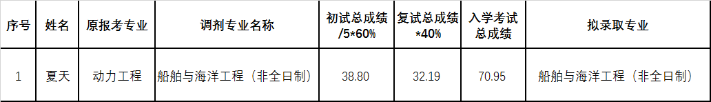 2017年船舶与海洋工程学院船舶与海洋工程非全日制专业研究生入学考试总成绩及拟录取名单
