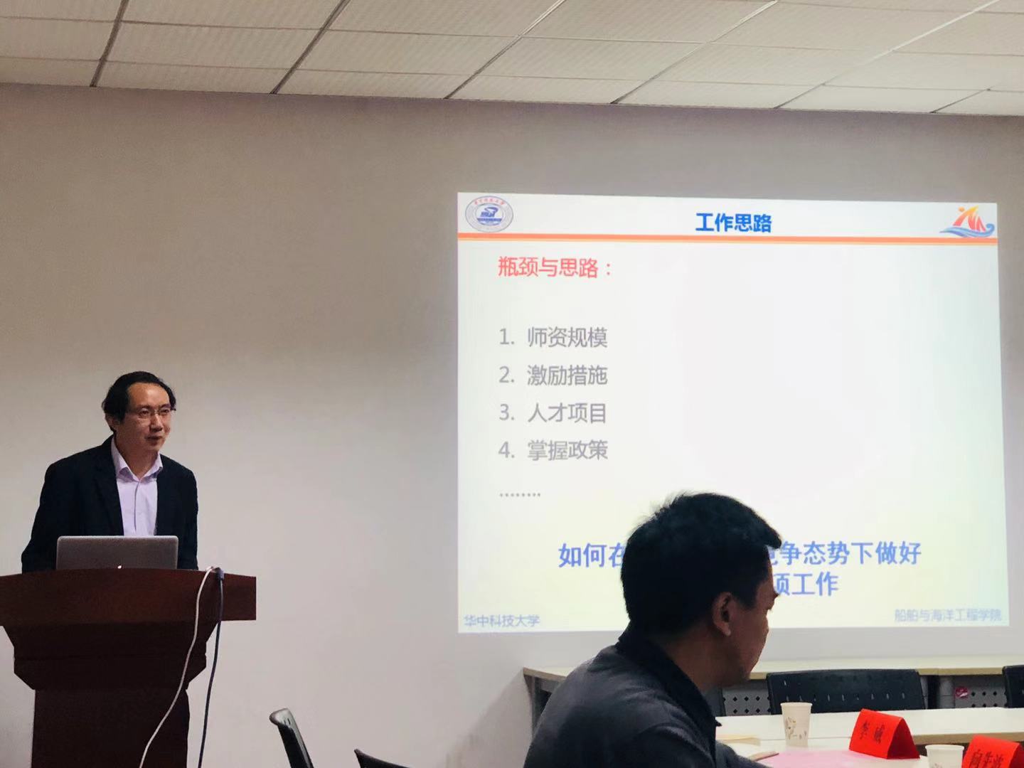向先波副院长汇报了学院近年获批国家自然科学基金项目的具体数据,介绍了学院的申请情况、现状和工作思路。他表示船海学院特色鲜明,在重大项目、优青项目申请上有潜力可挖,同时表示学院教师队伍结构合理,学院会抓紧对青年教师的指导培育,提升基金项目的成果和质量。